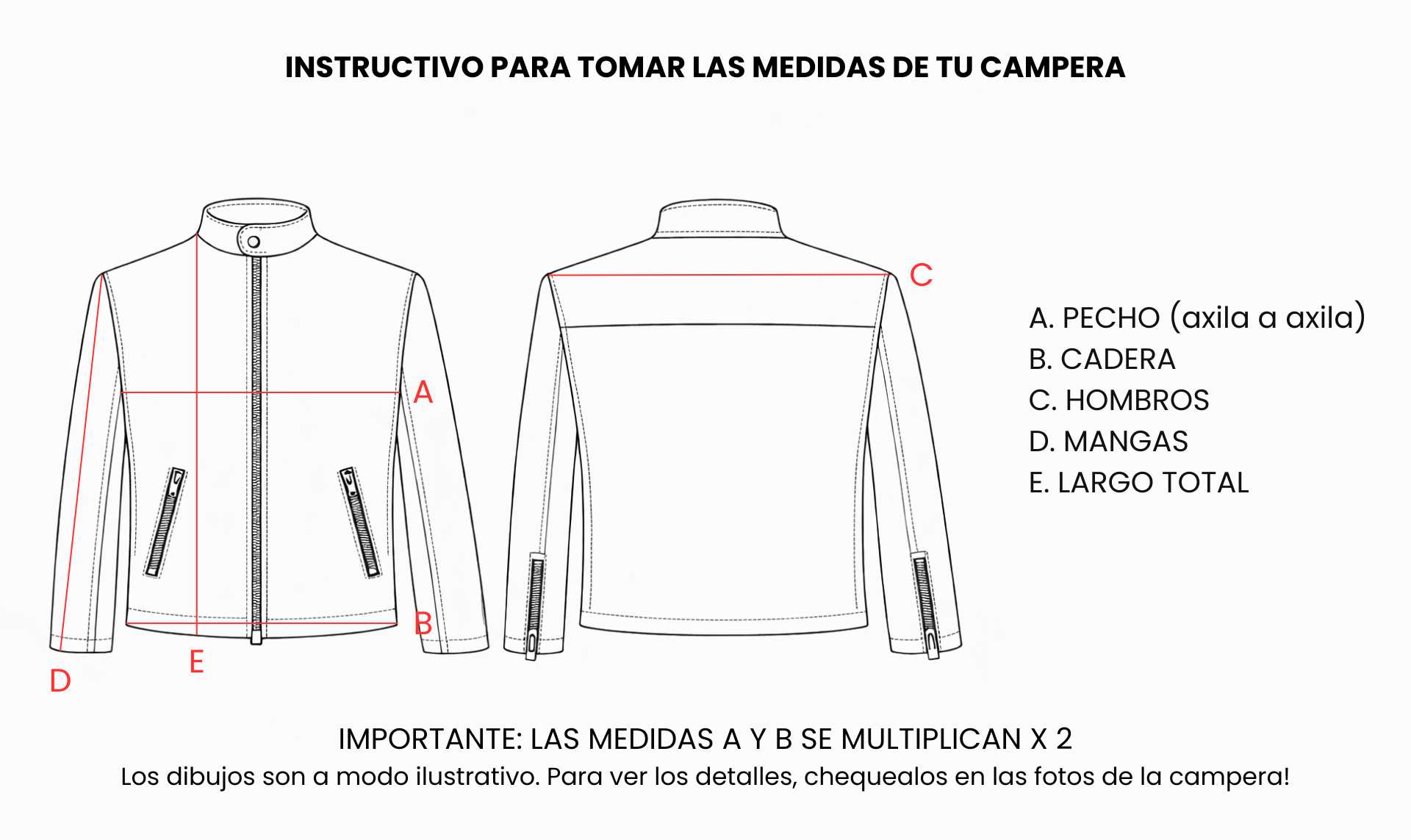 Aclaración: Tanto el forro de la campera como la tela del cierre siempre es en color negro en todos nuestros modelos.